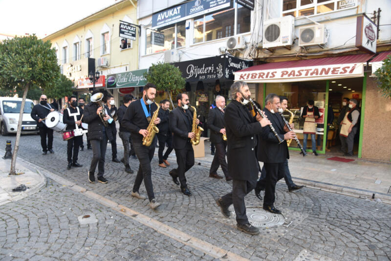 Milas Belediyesi Basın Bürosundan verilen bilgide, bando ekibini Milas Belediye Ana Hizmet Binası önünde karşılayan Milas Belediye Başkanı Av. Muhammet Tokat, bando ekibi tarafından belediye binası önünde çalınmaya başlanan müzik ve marşlara alkışlarla ritim tutarak eşlik etti.