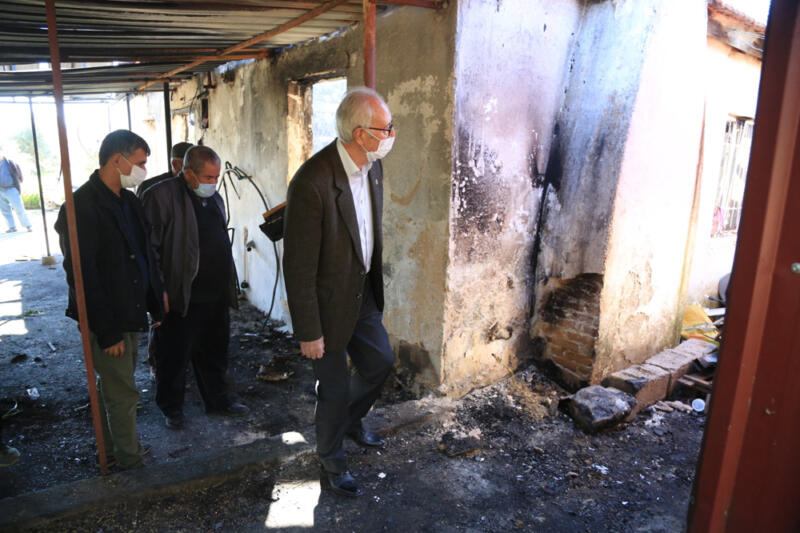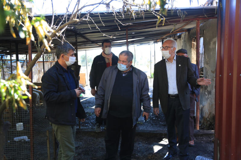 Milas Ziraat Odası Başkanı İsmail Atıcı, Milas Ziraat Odası İkinci Başkanı Fikret Turgut, Milas Ziraat Odası Meclis Üyesi ve Menteş Mahalle Temsilcisi Özcan Sabancı, Menteş Mahallesi Muhtarı Bayram Arıcı ile birlikte Menteş’te 26 Şubat tarihinde çıkan yangında evini kaybeden çiftçi Erhan Cura ve ailesini ziyaret ederek, geçmiş olsun dileğinde bulundu.