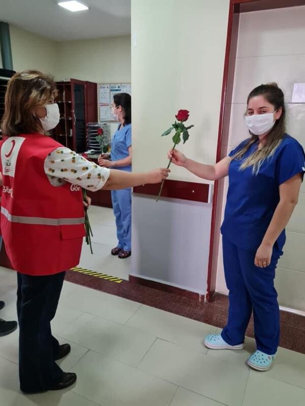 Türk Kızılay Milas Şube Başkanı Ayşegül Semerci Güneş ve arkadaşları, 2020 yılının Mart ayından bugüne mesai kavramı gözetmeksizin, kendi sağlıklarını hiçe sayarak toplum sağlığı için gece-gündüz demeden çalışan sağlık çalışanlarını, Anneler Günü’nde yalnız bırakmadılar. Görevi başında olan annelerin/ anne adaylarının ‘Anneler Günü’nü birer karanfil ve teşekkürle kutladılar.