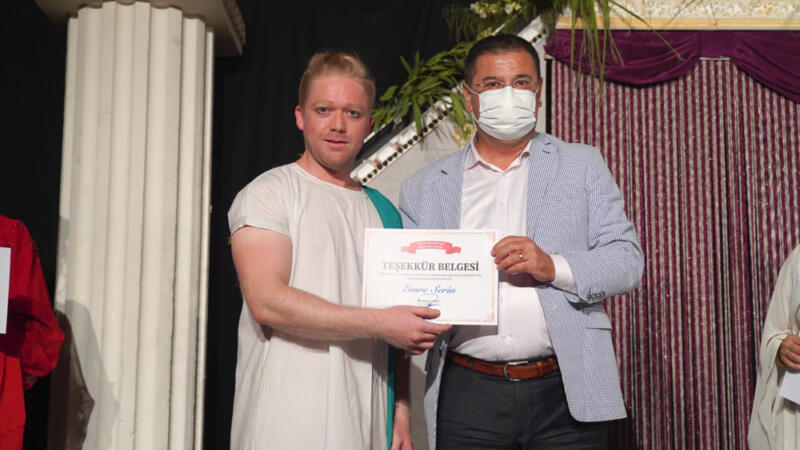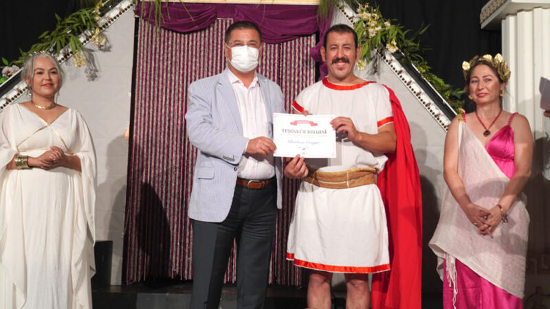Oyunun sonunda sanatçılara Teşekkür Belgesi takdim eden Milas Belediye Başkanı Av. Muhammet Tokat; “Burada bu oyunu çok güzel bir şekilde sahneleyen değerli oyuncu arkadaşlarımıza ve teknik ekibe teşekkür ediyorum. Aynı zamanda MİŞTİ’nin ismini yaşatmak konusundaki mücadeleye vermiş oldukları destek için de kendilerine teşekkür ediyorum. Burada sergilenen oyunun arkasında çok büyük bir emek var, çok büyük bir çaba var. Burada gösterilmiş olan bir başarı var. Sizleri de burada görmekten gerçekten çok mutlu olduk. Pandemi kurallarına riayet ederek, bu sanat ve kültür etkinliğine katkı vermenizden son derece mutluyum. Hepinize teşekkür ediyorum” dedi.