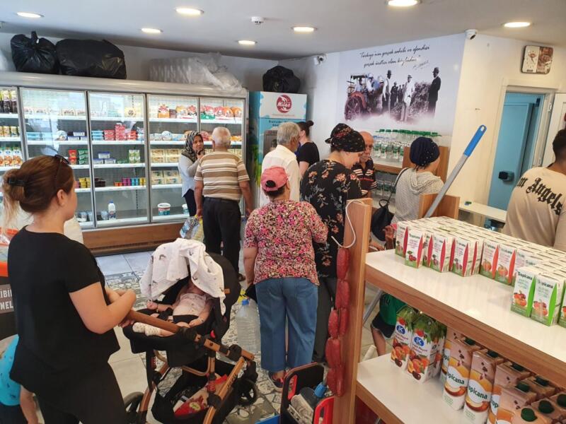 Tüketiciler ise gün boyu geçerli olan indirimli çiğ süte yoğun ilgi gösterdi.