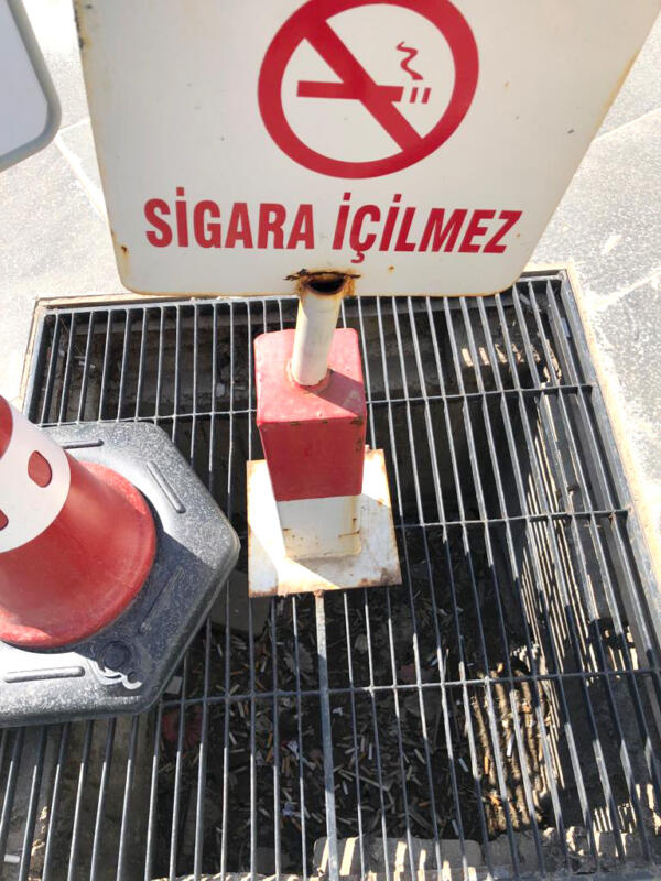 “Sigara İçilmez” yazıyor ama mazgal sigara izmariti dolu.
