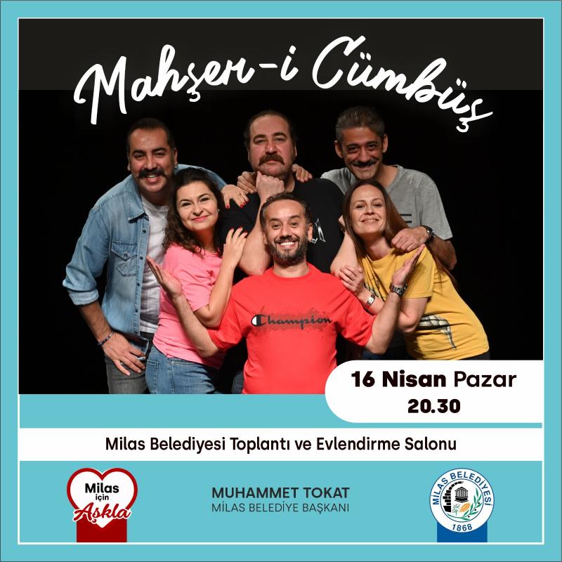 Ankara Üniversitesi Dil ve Tarih-Coğrafya Fakültesi Tiyatro Bölümü öğrencileri tarafından 2001 yılı Mayıs ayında kurulan Mahşer-i Cümbüş, 16 Nisan Pazar günü saat 20.30’da Milas Belediyesi Toplantı ve Düğün Salonu’nda sahne alacak.