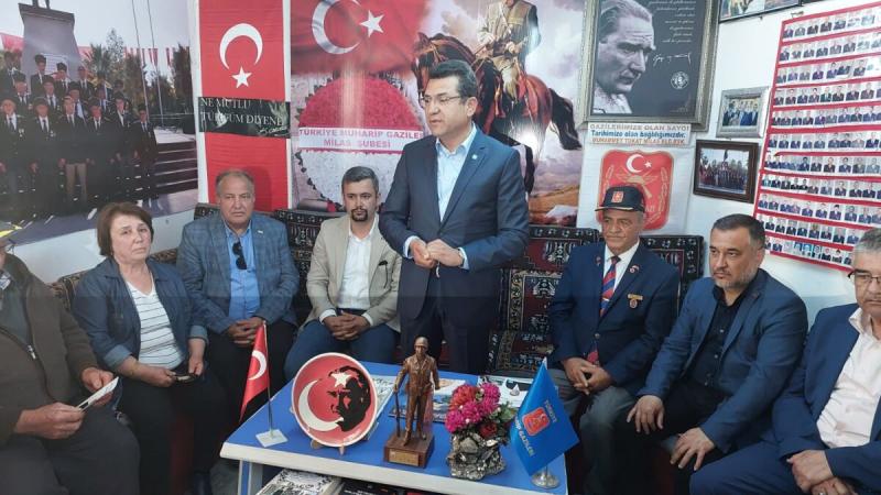 İYİ Parti Milas İlçe Başkanı Gürsel İnce ve beraberindeki partililerle ilk önce Türkiye Muharip Gaziler Derneği Milas Şubesi’ni ziyaret eden Tosun, uzun yıllardır şehit aileleri ve gazileri görmezden gelen, hatta kazanılmış haklarını bile gasp eden uygulamalara Millet İttifakı döneminde son verileceğini söyledi. Ülkenin gencecik evlatlarının vatan uğruna can verdiğini, kiminin ise görev malulü olarak kaderine terk edildiğini belirten İyi Parti Muğla Milletvekili Adayı Mehmet Tosun, “Şehit, gazi ve yakınları için ne yapsak az, ne yapsak yetersiz. Bizler, 14 Mayıs’ta Muğla’mızı Meclis’te temsil hakkı kazanmamız durumunda, sadece Muğla’daki değil tüm şehit ve gazi ailelerimizin Ankara’daki sesi, soluğu olacağız. Buna söz veriyoruz.” dedi.