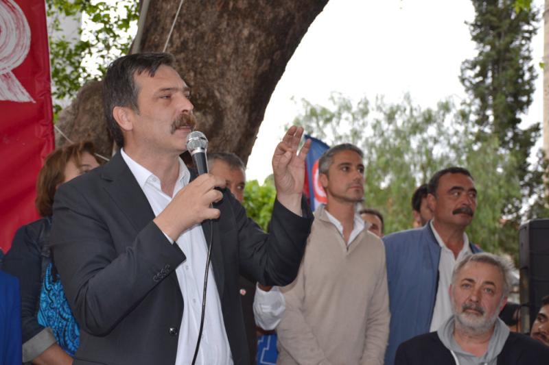 Milletvekili adayları Neşe Tuncer ve Mehmet Aslantuğ’un yaptıkları kısa konuşmaların ardından alkışlar ve “Yaşasın Türkiye İşçi Partisi” sloganları arasında konuşmasına başlayan Erkan Baş, “Başka bir siyaset mümkün, biz o başka siyaseti yapıyoruz” diyerek başladığı sözlerini şöyle sürdürdü: