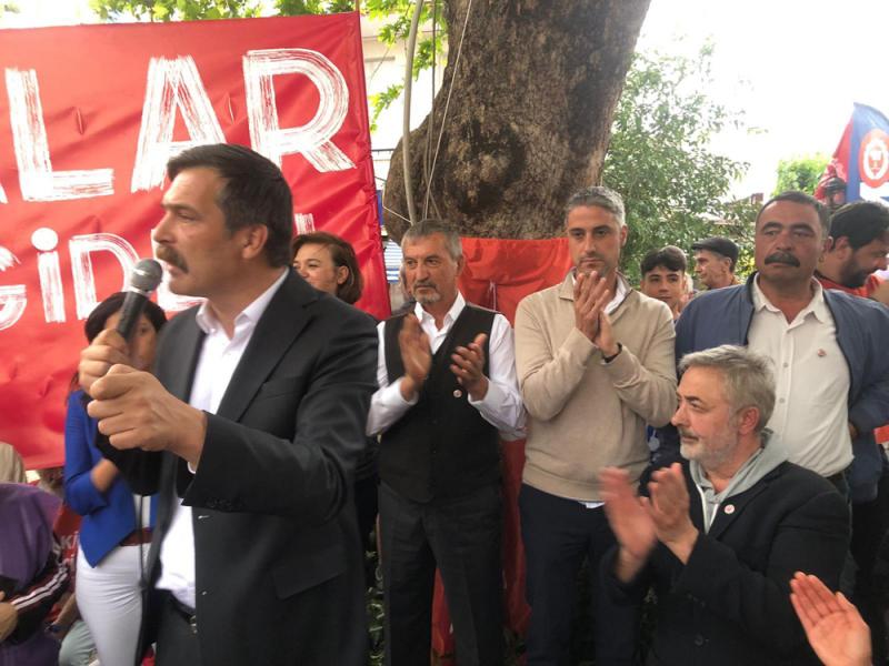 Yeni bir dönemi başlatacaksak, yeni bir döneme kapı açacaksak suçlular hesap verecek. Bütün suçlular hesap verene kadar iki elimiz onların yakasındadır. Biz emanet oy istemiyoruz. Hesaplaşmak için oy istiyoruz. Arkadaşlar, bu siyaset düzenini hep beraber değiştireceğiz. İşçi, kadın, çocuk katillerinden hesap soracağız. Bakın, bir siyasi parti gelip ‘sizi kurtaracağız’ diyorsa yalan söylüyor. Bizi bizden başka kimse kurtaramaz. Biz size yalan söylemiyoruz. Üzülerek söylüyorum ki, 15 Mayıs sabahı TİP iktidara gelmiyor. Kullandığınız bir oyla Kemal Kılıçdaroğlu’nu cumhurbaşkanı seçerek iktidarı, TİP’e oy vererek de ‘sorumlu ana muhalefet’i belirleyeceksiniz. Kılıçdaroğlu’nun halkın yararına her adımını sonuna kadar destekleyeceğiz. Örneğin, ‘İstanbul Sözleşmesi’ne ülkemizin yeniden imza atmasında onun sonuna kadar arkasında dururuz. Ancak, halkın, ülkemizin aleyhine bir şey yaparsa AKP’ye yaptığımız etkili muhalefetin 10 katını, 100 katını yaparız. Bütün partilerin aday listelerine bakın, TİP’in adaylarıyla karşılaştırın. Bizim adaylarımız arasında bir tane hırsız, uğursuz, yalancı, sömürücü patron bulamazsınız. Bizi o meclisten iyi şekilde kim temsil eder diye sorun kendinize. Hangi aday, partisinin genel başkanı ne derse onu yapar, hangi aday halk ne derse, halk ne isterse onu yapar? Bu soruların yanıtlarına göre karar vermelisiniz. Yapılması gereken budur …”