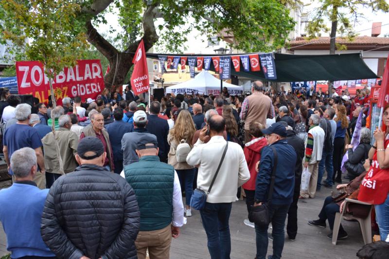 “Ama halâ daha ‘20 yıllık bu iktidardan kurtulabilecek miyiz’ endişelerini görüyoruz. Şunu açıklıkla söylüyorum: 12 gün sonra bu iktidardan kurtuluyoruz. Hiçbir tereddüde, hiçbir kaygıya gerek yok. Endişeye, korkuya gerek yok. ‘Acaba giderler mi’ diye soranlara cevabımız şu: İktidarı paşa paşa gönderiyoruz arkadaşlar. İktidar, koltuklarını korumak için birtakım ayak oyunları, hesaplar yapıyor. Seçim kanununu değiştirdiler. Adnan Menderes de Özal da bunları yapmaya çalıştı. Kurdukları tuzaklar kendi ayaklarına dolanıyor, dolanacak. Cumhur İttifakı’nın dört partisi de, 87 seçim bölgesinin 87’sinde ayrı ayrı giriyor seçime. Hepsi kendisini kurtarma derdinde. Biz, Emek ve Özgürlük İttifakı olarak 87 bölgenin 80’inde birlikte giriyoruz milletvekili seçimlerine. Sadece 7’sinde ayrı giriyoruz. Bu konuda, ‘yok sorun varmış, çatlak varmış, şuymuş, buymuş’ diyerek fırtına koparmaya çalıştılar. Ama unuttukları bir şey var. Bizim ittifakımız masa başında değil mücadele içinde kurulmuştur. Kendi kurdukları tuzağa düşmüşlerdir.
