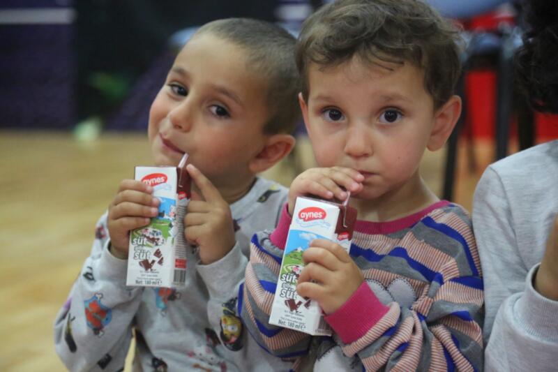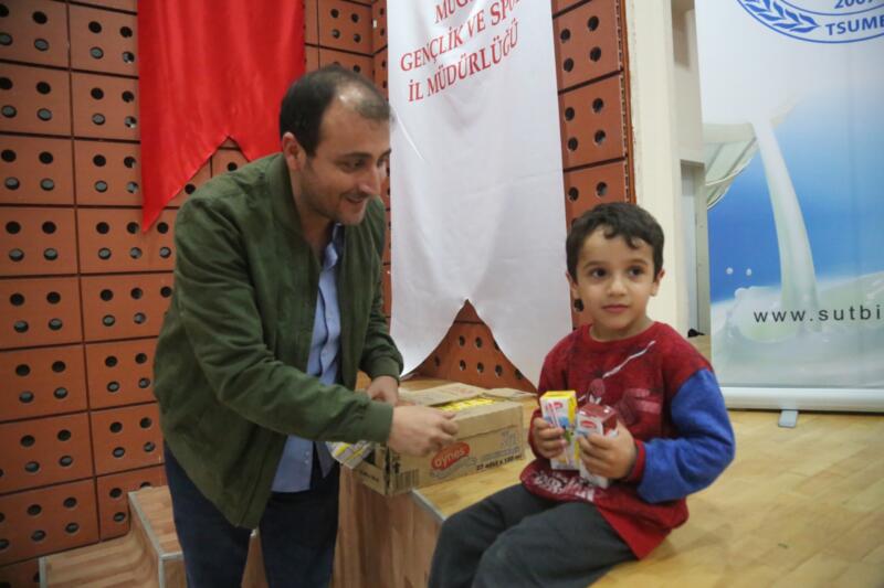 Etkinlikte, depremzede ailelere ve çocuklara süt ve süt ürünleri ikramı yapıldı.