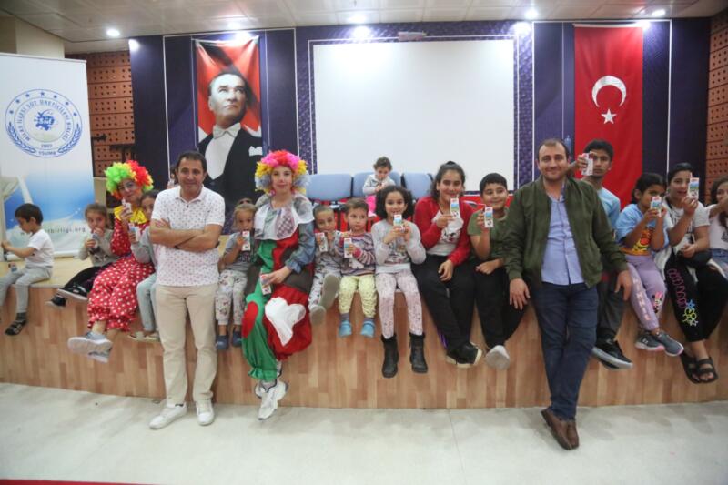 Depremin yarattığı moral bozukluğunun giderilmesi, çocuklara psikolojik destek olması amacıyla Dünya Süt Günü’nde palyaçolarla müzikli eğlence düzenlendi. Depremzede çocuklar, çalınan müziklerle ve palyaço ekibiyle doyasıya eğlendi.