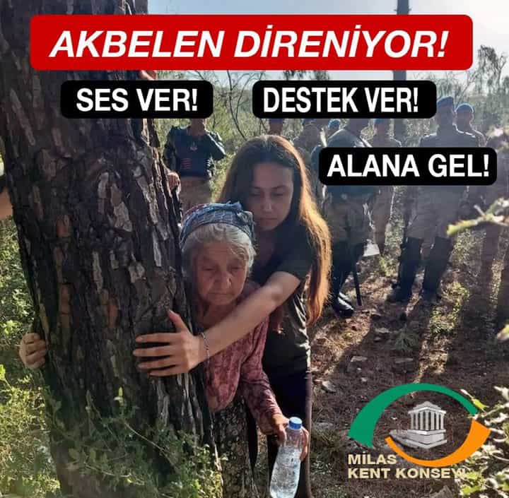 Milas Kent Konseyi’nden yapılan çağrıda da, “Akbelen direniyor! Ses ver! Destek ver! Alana gel!” denildi.