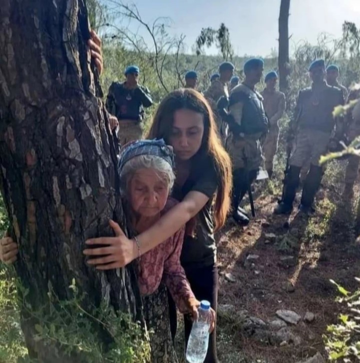 Bu eylem sırasında, adının Zehra olduğunu öğrendiğimiz yaşlı bir köylü kadının çam ağacına sırtını verip önce soluklanışına, ardından da ağaca sarılıp korumaya çalışmasına ilişkin görüntülerde duyulan, “Ah Teyzem, ah Nenem! Ah Nenem ah! Ah Nenem ah! Şu hale bakın ya … İnsanları düşürdükleri şu hale bakın … Kaç yaşındaki Nenem buraya ağacını korumaya geldi …” sözleriyle adeta ateşlenip başlıyorum haberi yazmaya …