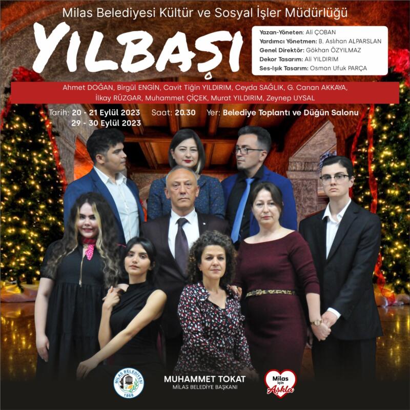 Milas Belediyesi Kültür ve Sosyal İşler Müdürlüğü bünyesinde 2022-2023 Eğitim-Öğretim yılı başında başlayan Yaratıcı Drama Atölyesi yetişkin grubu tarafından sahnelenen ve seyirciden tam not alan Yılbaşı oyunu sanatseverlerle yeniden buluşacak. 20-21 Eylül ve 29-30 Eylül tarihlerinde, saat 20.30’da Belediye Toplantı ve Düğün Salonu’nda sahne alacak Yılbaşı oyununda Ahmet Doğan, Birgül Engin, Cavit Tiğin Yıldırım, Ceyda Sağlık, G. Canan Akkaya, İlkay Rüzgar, Muhammet Çiçek, Murat Yıldırım ve Zeynep Uysal sahne performanslarını sergileyecek.