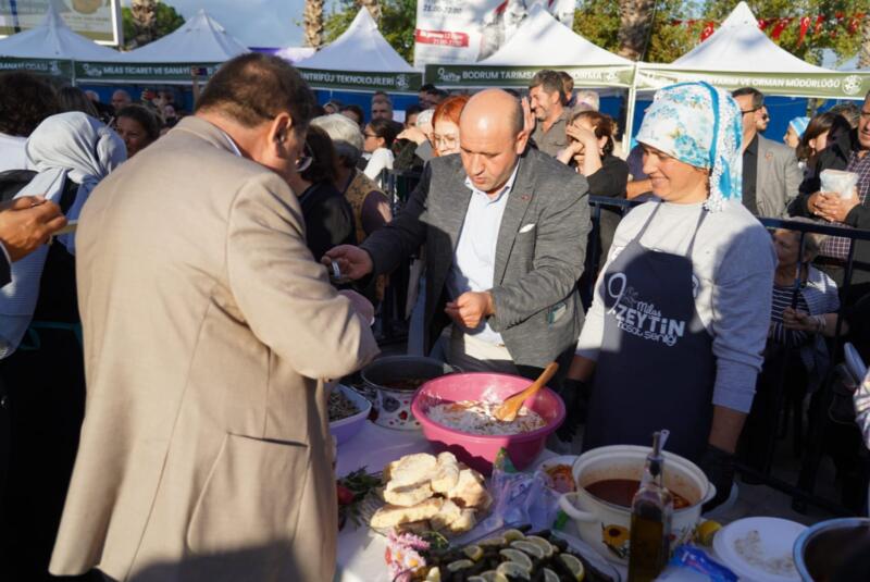 Şenlikte 50 kilogram zeytinyağlı meze ürünleri dağıtılırken, Yunan Yemekleri sunumu yapıldı, Ahmet Çetin’in Milas mutfağını anlattığı ‘Milas Tadında’ kitabı tanıtıldı.