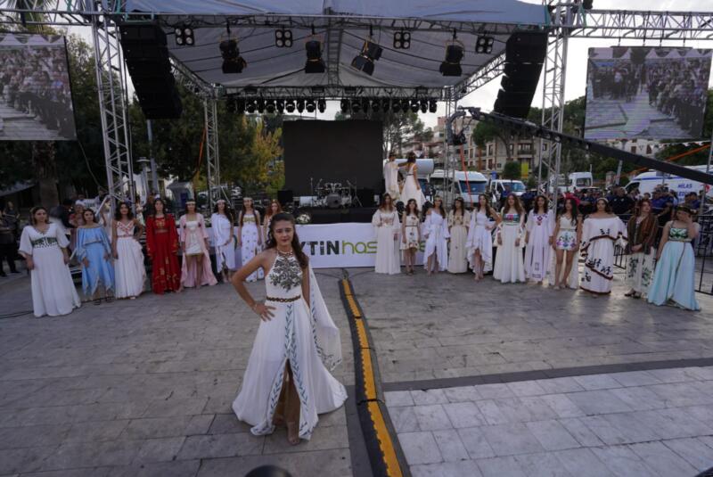 Nadiye Uslu’nun hazırladığı Zeytin Temalı Karya Defilesi’nde ise, Milas’ın binlerce yıllık tarihinin motiflerinin işlendiği kıyafetler yoğun ilgi gördü.