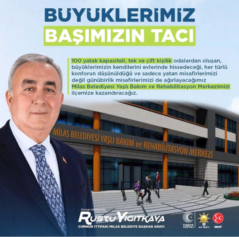 Cumhur İttifakı Milas Belediye Başkan Adayı Rüştü Yiğitkaya, seçilmesi durumunda önümüzdeki 5 yılda uygulayacağı projeleri kamuoyu ile paylaşmaya başladı. “En önemli projem diyerek” açıkladığı ilk projesi Milas Belediyesi Yaşlı Bakım ve Rehabilitasyon Merkezi’nin ilçeye kazandırılması oldu…
