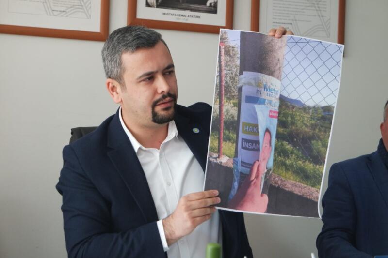 Sağduyu içerisinde bu seçimleri sükunet içinde geçirmek varken, bu tür şeylerle ortamı germek kime ne kazandırır? Biz de yaparız demeyi kendimize yakıştıramıyoruz ancak bizi başka türlü davranmaya mecbur etmesinler” diyerek yırtılan afişlerin fotoğraflarını gösterdi.