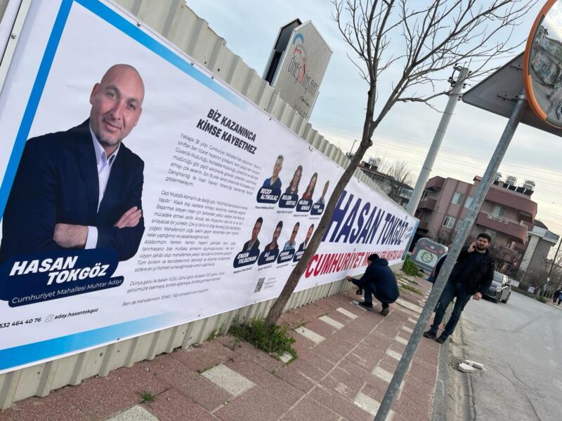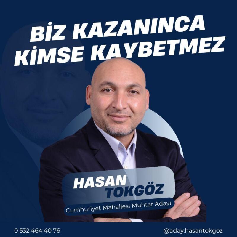İlçe merkezinin son yıllarda en büyük gelişimi gösteren, modern görüntüsüyle dikkat çeken Cumhuriyet Mahallesi’nin eksikliklerini gidermek ve bugünkü görünümünden çok daha modern bir hale getirmek, sosyal donatılarla güvenli bir mahalleyi mahalle sakinleriyle birlikte oluşturma adına aday olduğunu belirten Hasan Tokgöz; “Cumhuriyetimizin kurucusu Gazi Mustafa Kemal Atatürk’ün de dediği gibi muhtar demokrasinin temel taşıdır. Klasik boş vaatlerle kimseyi kandırma niyetinde değilim. Başarmak isteyen insan için bahaneler yoktur, sadece inanmak ve mücadele etmek vardır. İhtiyacımız olan tek şey bir el ve bizi anlayacak bir yürektir” diyerek mahalle sakinlerinden önümüzdeki dönem için yetki istiyor.
