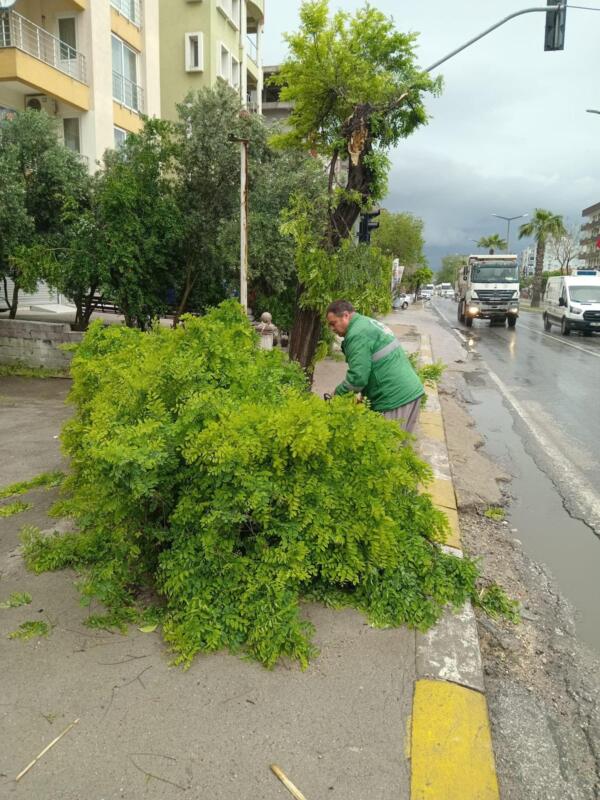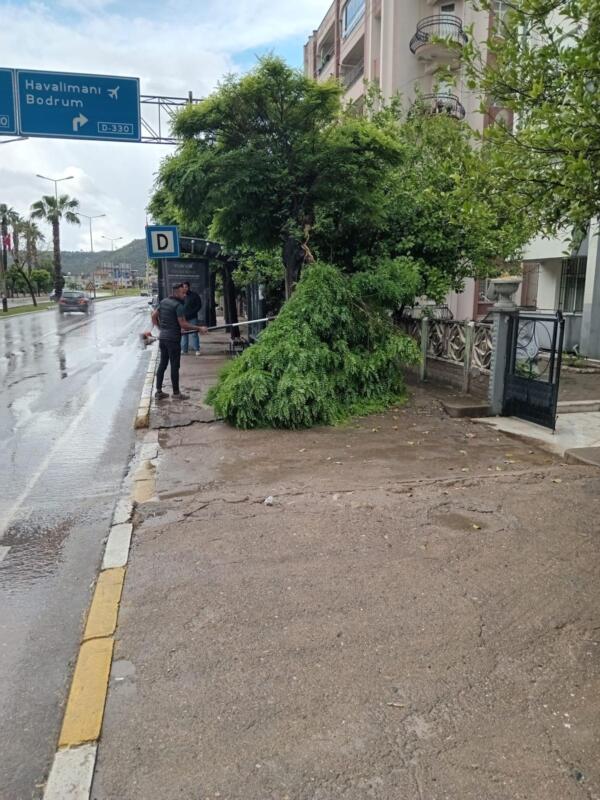 Milas Belediyesi ekipleri ilçemiz genelinde gece saatlerinden itibaren etkili olan fırtına ve yağışın ardından oluşan olumsuz durumlara anında müdahale etti.