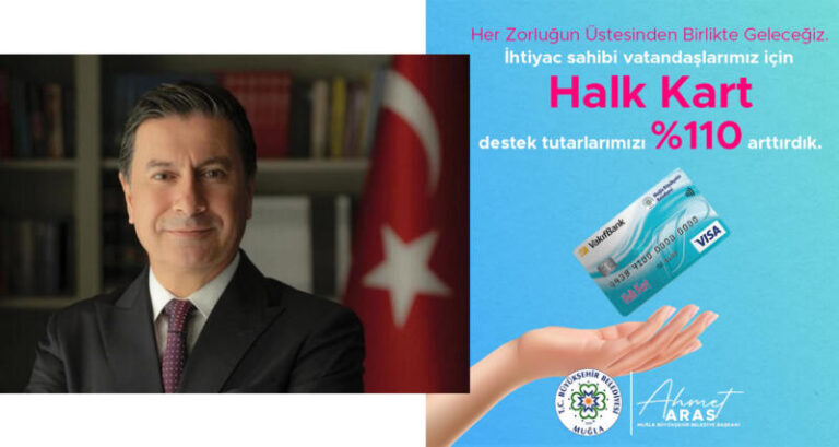 31 Mart yerel seçimleriyle Muğla’nın yeni Büyükşehir Belediye Başkanı olan Ahmet Aras, ihtiyaç sahibi vatandaşlara destek olmak için Büyükşehir Belediyesi tarafından vatandaşlara sağlanan “Halk Kart” yardımını yüzde 110 arttırdı. İhtiyaç sahiplerinin gıda, yakacak, giyim vb. temel ihtiyaçları için uygulanan Halk Kart projesi ile vatandaşlara destek sağlanıyor.