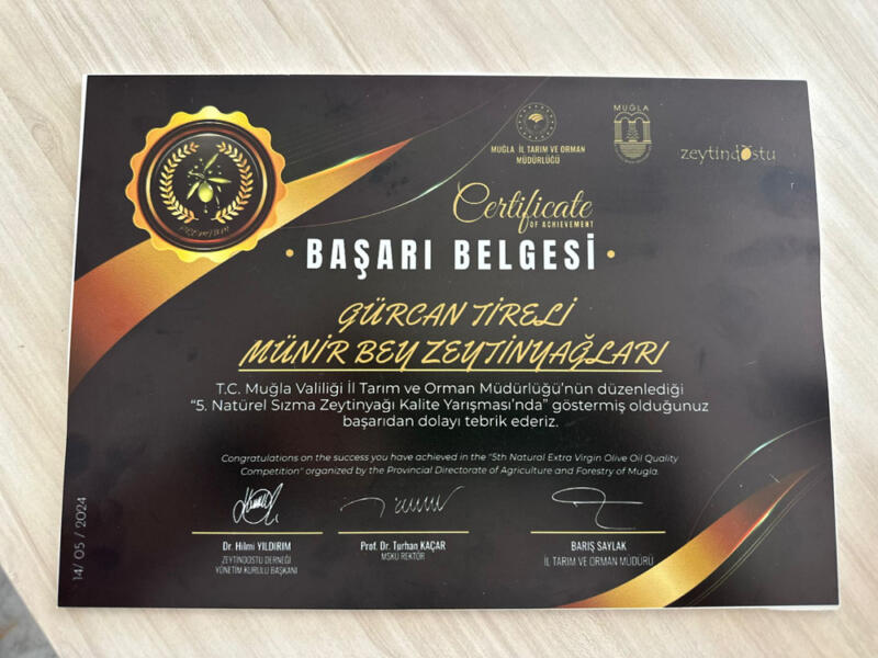 Zeybekler Zeytinyağı Tesisleri sorumlusu İbrahim Zeybek, aldıkları ödülün yanı sıra, 5 diğer markanın da kendi tesislerinde üretildiğinin gurur ve mutluluğunu yaşadıklarını belirterek, “Her sene düzenlenen Tarım İl Müdürlüğü’nün yaptığı ‘5. Zeytinyağı Yarışması’nda zeybekler zeytinyağı tesislerinde üretilen 6 marka ödül aldı. Üretimden markalaşmaya kadar geçen kalitede emeği geçen zeybekler zeytinyağı fabrikası üretim ekibimiz ile ödül alan markalar Gürcan Tireli (premium ödül) Furkan Günay (altın madalya), Gülçin Engin (altın madalya), Mehmet Kiriş (altın madalya), Mehmet Al (bronz madalya) ve Hakan Bulgurlu’da (bronz madalya) alan işletmelere teşekkür ederiz” dedi.