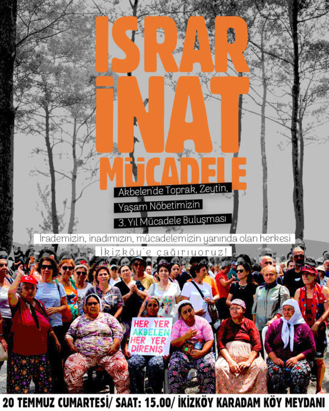 İkizköy Çevre Komitesi’nden konuyla ilgili olarak yapılan çağrıda, “Birliğimizi korumakta, köyümüzde yaşamakta, mücadelemizi sürdürmekte ısrarlıyız! Tüm köylüleri ve dostlarımızı, Akbelen’in kesiminin yıldönümünde, nöbetimizin üçüncü yılı sona ererken bir araya gelmeye, birliğimizi büyütmeye ve haykırmaya çağırıyoruz: Şirketlerin değil köylünün yanında ol!” denildi.