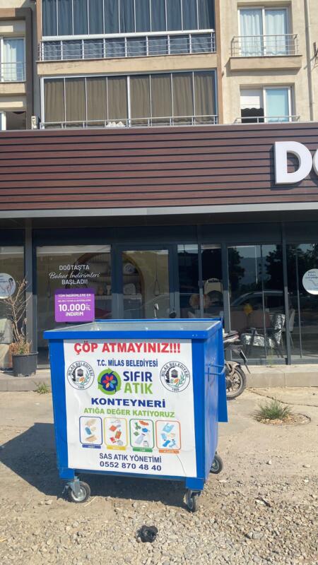 Milas Belediyesi, atıkların kaynağında ayrı toplanarak geri dönüşüme kazandırılmasını teşvik etmek amacıyla ilçenin çeşitli noktalarına sepet ve konteyner yerleştirdi.