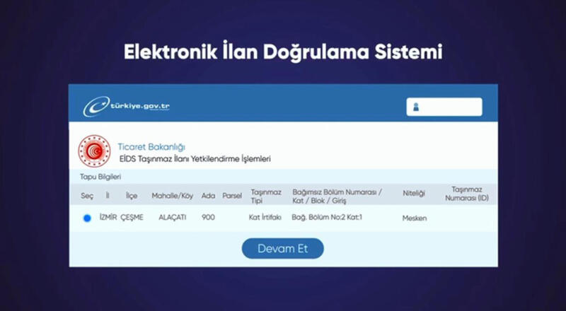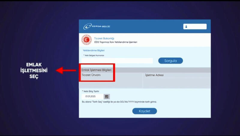 1 Ocak 2025’ten itibaren, yayında olan tüm ilanlar için mal sahiplerinin E-Devlet üzerinden yetki verdikleri emlakçılar aracılığıyla ilanlar yayınlanacaktır. E-Devlet üzerinden yetki verilmemiş ilanlar, sahibinden.com, Hepsi Emlak, Zingat gibi ilan sitelerinde yayınlanamayacaktır.