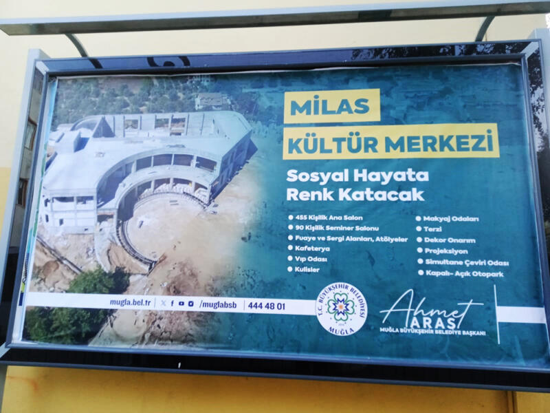 Milas Kültür Merkezi ile ilgili olarak bir süredir ilçemizde sergilenen, Muğla Büyükşehir Belediye Başkanı Ahmet Aras imzalı afişlerde verilen bilgileri de not ederek noktalayalım şimdilik: