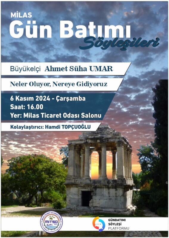 Günbatımı Söyleşi Platformu ile Milas Ticaret ve Sanayi Odası(MİTSO) işbirliğiyle 6 Kasım Çarşamba günü “Neler oluyor, nereye gidiyoruz?” söyleşisi yapılacak.