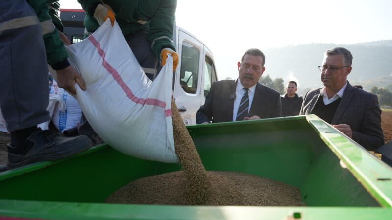 Yaklaşık 500 kilogram karakılçık buğday tohumu, Milas Belediye Başkanı Fevzi Topuz’un da katıldığı etkinlikle toprakla buluşturuldu. Başkan Topuz, elleriyle tohumları ekerek bereketli bir hasat dileğinde bulundu.