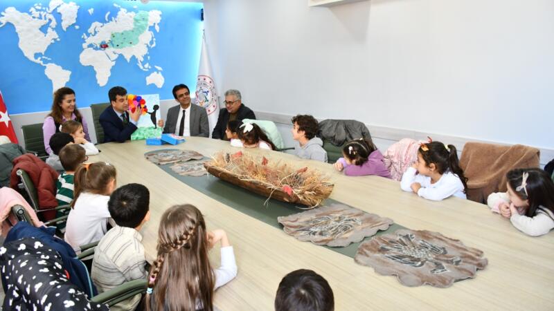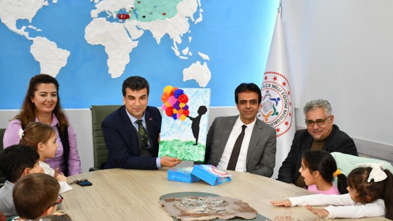 Ziyarete, Havva Ersoy Anaokulu Müdürü Muhammet Mercan ve Anaokulu Öğretmeni Songül Can da eşlik etti. Müdürlük binasında gerçekleşen buluşmada, İlçe Milli Eğitim Müdürü İsa Bal, Şube Müdürleri Mahir Kuzu ve Ümran İnce, “Çalışkan Arılar” sınıfı öğrencilerinin geri dönüştürülmüş materyallerle hazırladıkları kapı süsünü ve kendi yaptıkları resimleri incelediler.