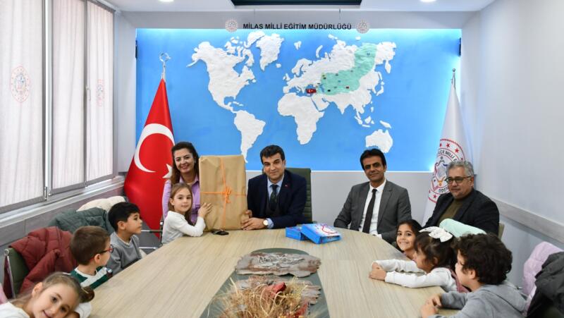 Muğla Valiliği himayelerinde İl Milli Eğitim Müdürlüğü tarafından yürütülen Muğla Mavi Yeşil Okullar Projesi kapsamında, Havva Ersoy Anaokulu öğrencileri İlçe Milli Eğitim Müdürü İsa Bal’ı ziyaret etti.