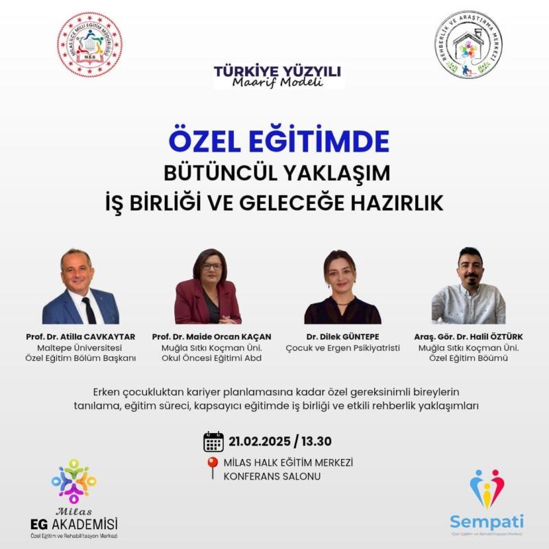 Milas’ta, özel gereksinimli bireylerin eğitimi ve geleceğe hazırlanmasına yönelik kapsamlı bir etkinlik düzenleniyor. “Özel Eğitimde Bütüncül Yaklaşım: İş Birliği ve Geleceğe Hazırlık” başlıklı konferans, 21 Şubat 2025 tarihinde Milas Halk Eğitim Merkezi Konferans Salonu’nda gerçekleşecek.