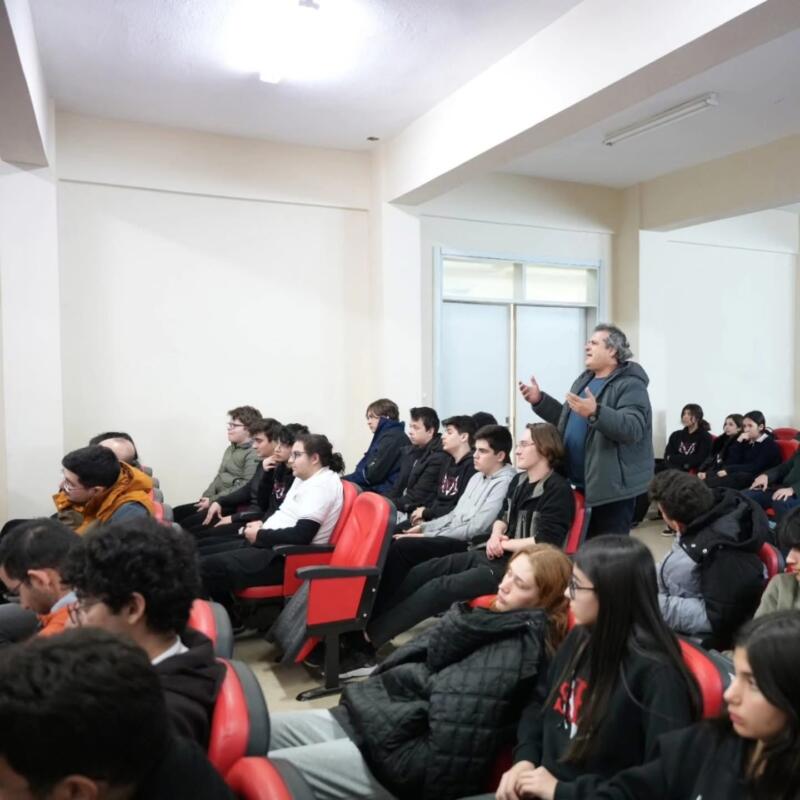 Söyleşi, samimi ve etkileşimli bir atmosferde gerçekleşirken, Prof. Dr. Gülsevin, Türk Dil Kurumu’nun çalışmaları, Türkçenin yapısı, imla kuralları ve dilin günümüzdeki kullanımı üzerine kapsamlı değerlendirmelerde bulundu. Dil bilinci, kelime kullanımı ve yazım kuralları üzerine önemli bilgiler paylaşan Gülsevin, öğrencilerin sorularını da yanıtladı.