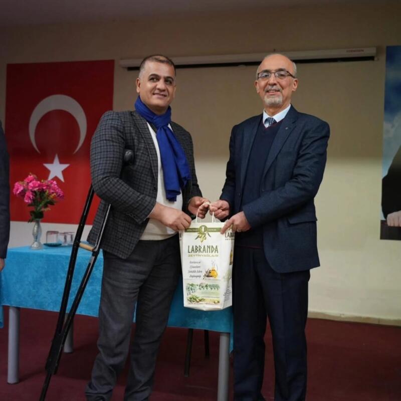 Söyleşinin ardından, Okul Müdürü Ali Aktaş, üniversite yıllarında hocası olan Prof. Dr. Gürer Gülsevin’e teşekkürlerini sunarak plaket ve Milas’a özgü çam sakızı çoban armağanı takdim etti. Etkinlik, İlçe Milli Eğitim Müdürü İsa Bal, Şube Müdürü Veysi Bayram, okul yöneticileri, öğretmenler ve öğrencilerle birlikte çekilen hatıra fotoğrafıyla son buldu.