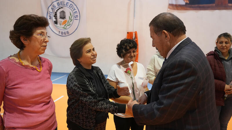 Milas Belediye Başkanı Fevzi Topuz, belediye bünyesinde devam eden Yaşam Boyu Spor programına katılan kadın sporcuları ziyaret ederek 8 Mart Dünya Emekçi Kadınlar Günü’nü erken kutladı.