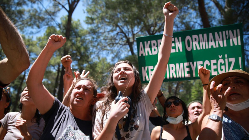 2019 yılında İkizköy mahallemizdeki Akbelen Ormanının, Kemerköy ve Yeniköy termik santrallerine kömür sağlanması için maden sahası yapılmak üzere kesilmesi gündeme gelmişti. O tarihten itibaren İkizköylüler ormanlarını korumak için hukuki mücadele yürüttüler ve iki yıl boyunca çadırlı orman nöbeti tuttular. Bu mücadeleye rağmen, 2023 Temmuzunda kolluk kuvvetlerinin müdahalesi ile 780 dönümlük Akbelen Ormanının kesilmesi ve maden sahası açılması büyük toplumsal tepkiye yol açmıştı. Bölgedeki zeytinlikler nedeni ile maden planlandığı kadar genişletilemediği için şu an işletilemiyor. İkizköylüler şimdi de kömür madeni tarafından yok edilmek istenen zeytin ağaçları için ve termik santrallerin yarattığı kirliliğe karşı mücadeleyi sürdürüyorlar.