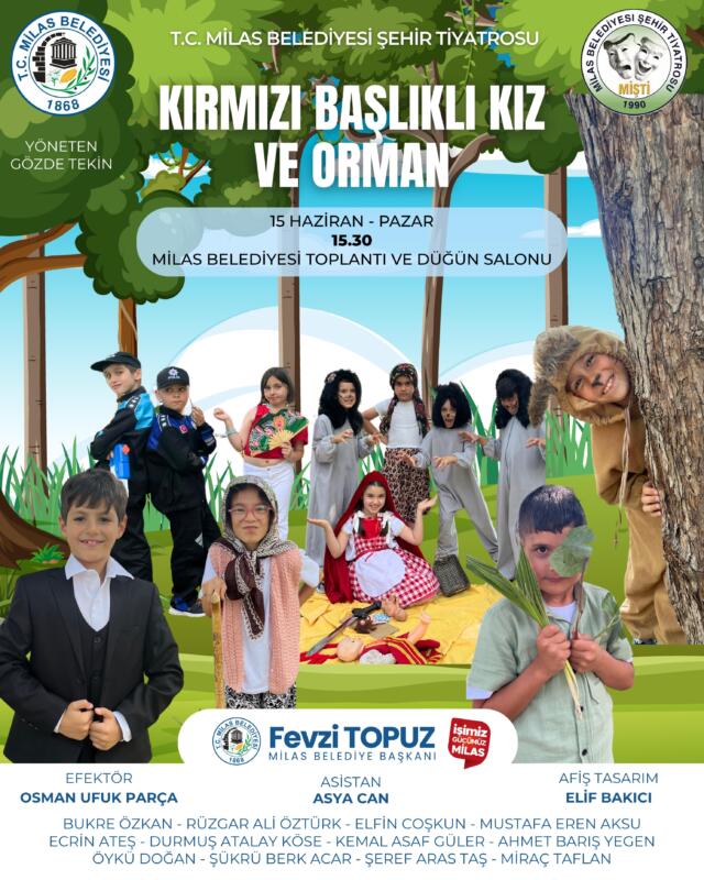 Hafta sonu tiyatro şöleni, 15 Haziran Pazar günü saat 15.30’da “Kırmızı Başlıklı Kız ve Orman” adlı oyunla devam edecek. Gözde Tekin yönetmenliğinde sahnelenecek bu oyun, klasik masalı yeni yorumuyla sahneye taşıyacak. Bukre Özkan, Rüzgar Ali Öztürk, Elfin Coşkun ve Mustafa Eren Aksu gibi oyuncuların yer aldığı yapım, ailelere ve çocuklara unutulmaz anlar yaşatacak.