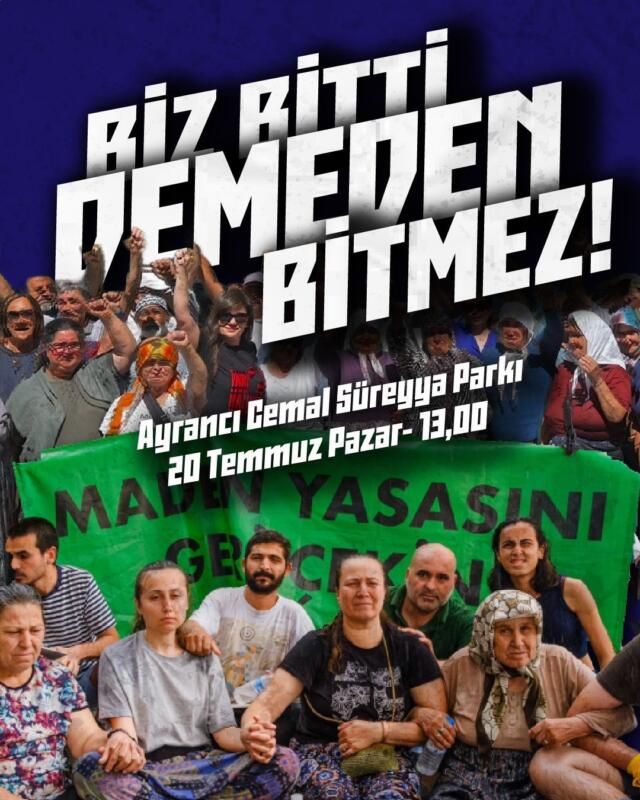 “Ankara’da dayanışma içinde olduğumuz tüm dostlarımızla birlikte, onların desteğini de yanımıza alarak, bu mücadele ateşini köyümüzde ve tüm Anadolu’da daha da büyütmek üzere yola çıkacağız. Ankara’ya veda ederken yanımızda olmanız, mücadelemizin yeni etabına dair sözlerimizi kamuoyuna ulaştırmanız bizim için bundan sonraki adımda kritik önemde. 20 Temmuz Pazar günü (yarın) saat 13:00’te görüşmek dileğiyle” denildi.