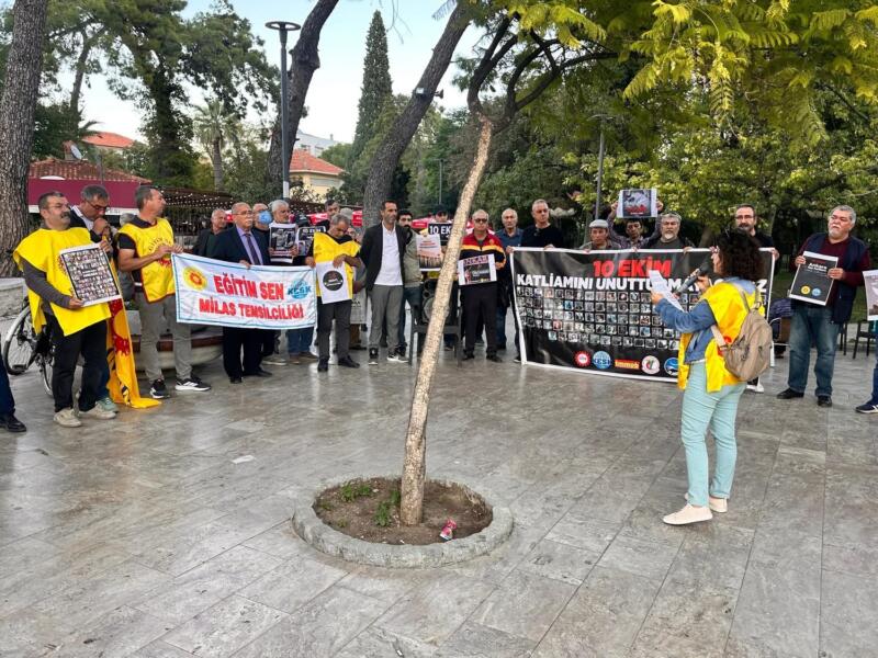 Eğitim Sen Milas Temsilciliği, 10 Ekim 2015 Ankara Gar Katliamı’nın 10. yılı vesilesiyle Milas Şehir Parkı’nda bir basın açıklaması düzenleyerek katliamın faillerinin ve sorumlularının açığa çıkarılmasını, adaletin sağlanmasını talep etti.