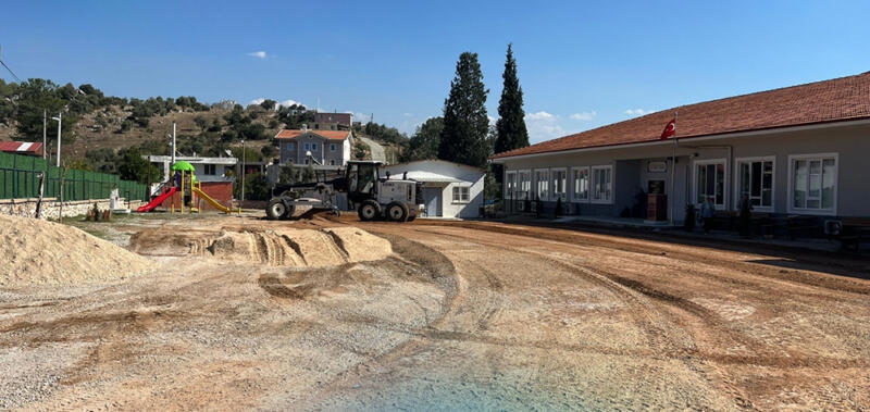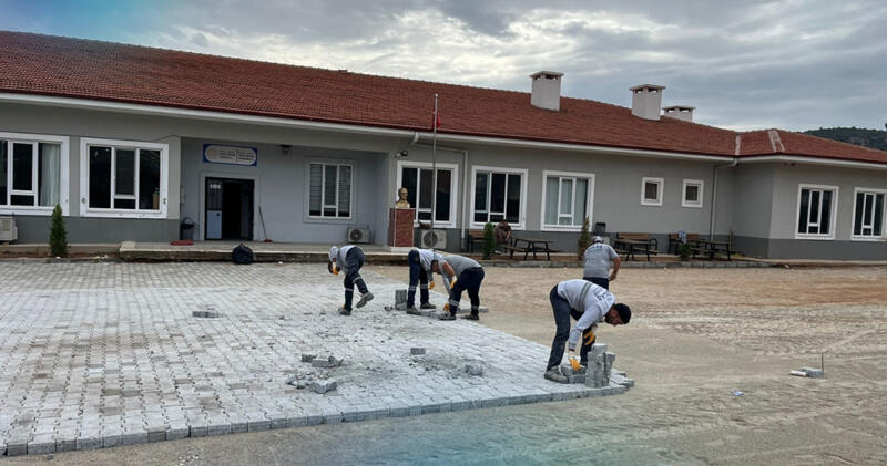 • Dibekdere Mahallesi: Okul bahçesinde 900 m2 kilit parke, 100 m çim bordür, engelli rampası ve voleybol direk ankraj betonlaması tamamlandı.