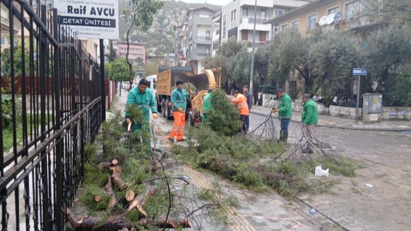 Fırtınanın ilk anlarından itibaren harekete geçen belediye ekipleri, ilçe merkezi ve kırsal mahallelerde gelen ihbarları değerlendirerek risk oluşturan alanlara anında müdahale etti. Yapılan çalışmalarla hem vatandaşların güvenliği sağlandı hem de ulaşımda yaşanabilecek aksaklıkların önüne geçildi.